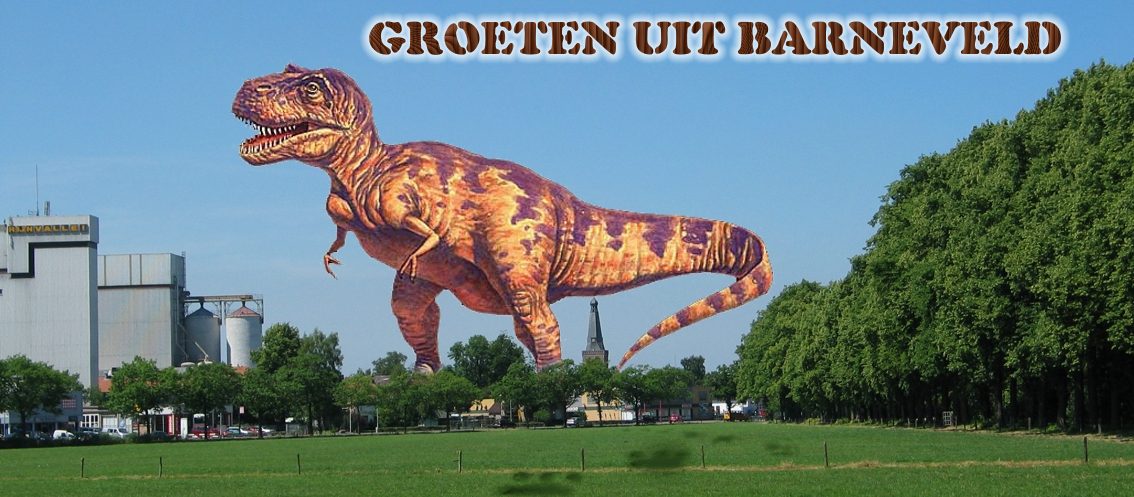 Even later was alles weer voorbij, Barneveld en de dodelijk verschrikte gemeenteraad in een shock achterlatend. Burgemeester en Wethouders zijn nou in spoedzitting bijeen, om te beraadslagen hoe de ontdekking van dit dier een zo groot mogelijke economische impuls kan geven. Ede kan het met dat onbeduidende poemaatje wel schudden! Tevens wordt overwogen om het neonkunstwerk, wat ter waarde van 100.000 euro voor het nieuwe gemeentepaleis zou moeten verschijnen ( ik heb daar elders   in dit weblog al aandacht aan besteed ) te vervangen door misschien wel het gekooide exemplaar van de Barneveldse Tyrannosaurus. Dat zou als bijkomend voordeel hebben dat de burgers gelijk een beetje op afstand blijven.