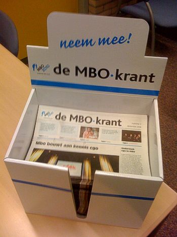 Op een tafeltje in onze docentenkamer stond sinds begin deze week een blijde display met daarin een flinke stapel “MBO-kranten”. De MBO-krant is een uitgave van het Procesmanagement MBO 2010, en met zo’n mooie naam kan het natuurlijk niet meer mis gaan. De krant is bedoeld voor iedereen die betrokken is ( of meegesleept ) bij de invoering van het competentiegerichte onderwijs in het MBO. Aan het eind van deze week waren er toch zeker wel twee of drie krantjes afgenomen, waaronder eentje door ondergetekende, om als inspiratie bij het schrijven van dit episteltje te dienen.